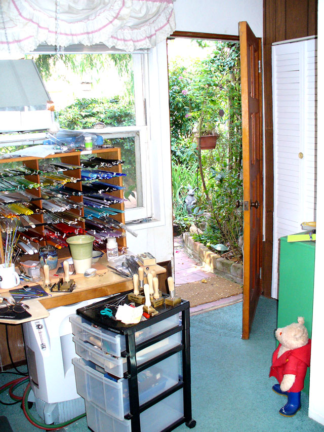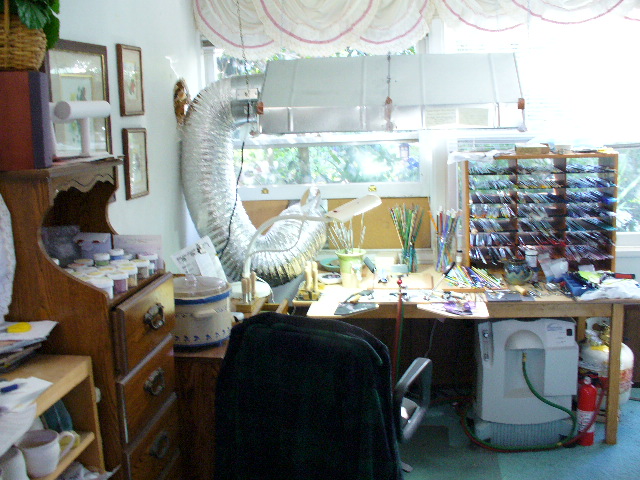 This is my studio in my garden ,it is a room behind the garage that used to be a guest bedroom.